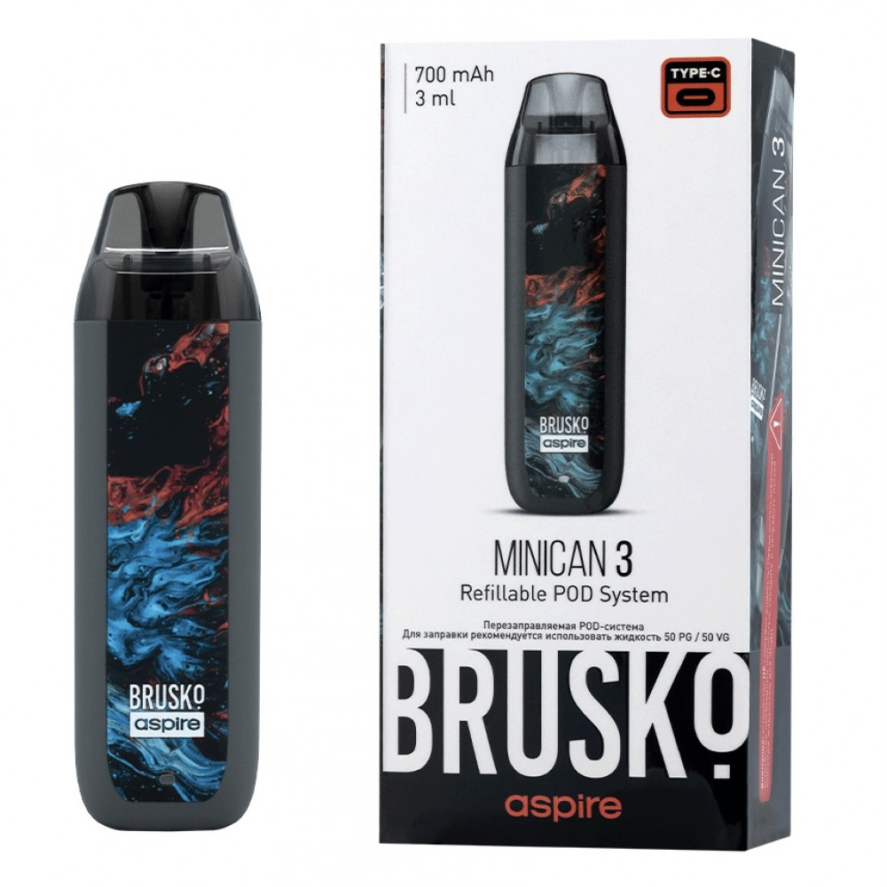Перезаправляемая Под-Система Бруско Миникан 3 (Brusko Minican 3) 700 mah, Серый Флюид - купить в Заполярном